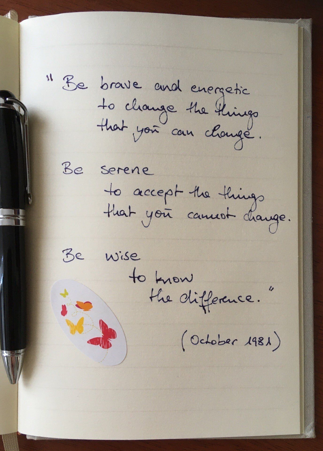 Maybe it is a good start to remember what our parents told us when we were young: Stop blaming others! Start with what you can do yourself! And guess what: When I recently found my 1981 version of an autograph book which we used to exchange when we were 5th grade classmates, I realised once again that we don’t have a lack of knowing and wanting, but of acting. It’s like with your “10-minutes-a-day strengthen-the-core” exercises which you know you should better do…
