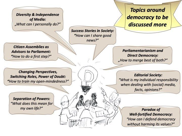 This was the moment when I (together with some of my colleagues) decided to allocate even more than a third of my working time on activities around “pluralistic democracy”. Since we are a “Social Business” and are used to cross-subsidising our pro bono activities, we didn’t start a foundation or put up an initiative website. We even hesitated to talk about it in public, because we believe that there is already far too much “aggressive selling” by almost everybody in today’s (social) media realities. But now, years later and after many bilateral conversations with wonderful people from very different national, ethnic, and social backgrounds who want to get involved more with “Citizens Skills Matter” activities and experiments, I have decided to summarise my highlights and learnings so far. I will share some of them in the next weeks in my personal network and invite you all to contribute.