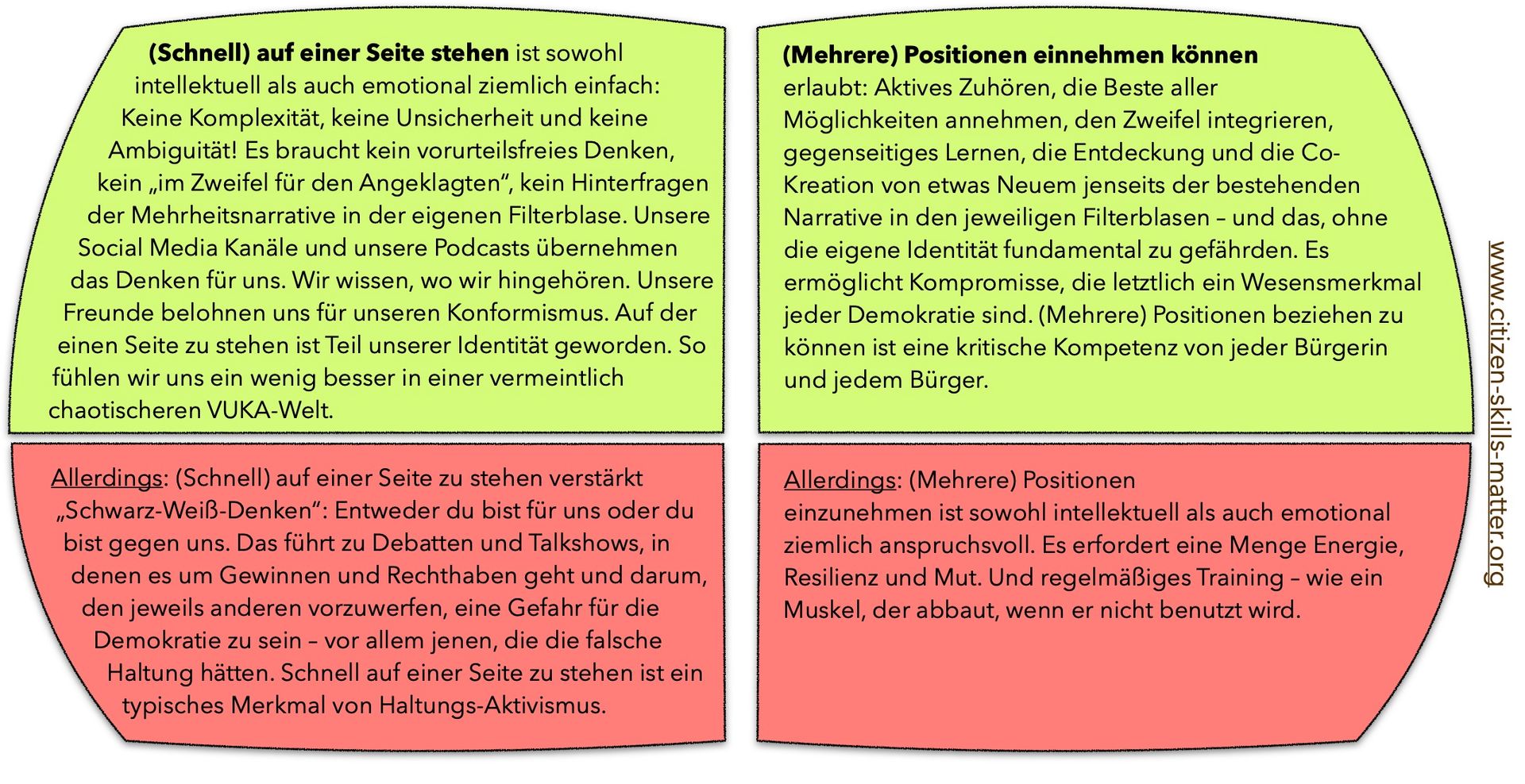 Lasst uns wieder lernen, (mehrere) Positionen einnehmen zu können anstatt (schnell) auf einer Seite zu stehen!