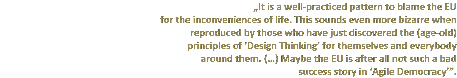 Dear friends, Feasible prototypes, tolerance to ambiguity, reality testing, continuous learning loops, multilateral agreements with ever changing negotiators, adaptation to divergent national narratives: How good are we actually ourselves with all this – in our work, in our private life, and in our role as a citizen? I wish you (and your families) in the coming year courage and resilience when “failing forward”. Best wishes, Torsten